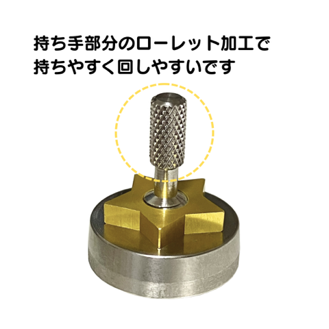 先端を丸く仕上げることで相手の姿勢を崩しつつ、自身は安定して回転。持ち手のローレット加工により力を伝えやすく、扱いやすさも兼ね備えています。
